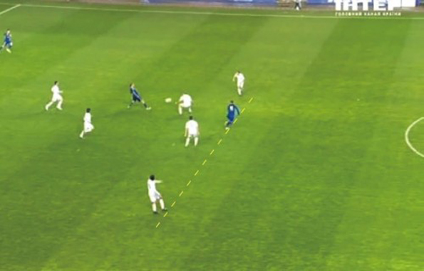 Картину окончательно довершали постоянные подключения к атакам спереди Гусева, что вовсе превращало построение украинской команды в своего рода игру с тремя защитниками. Примерно таковой она оставалась до самого конца 2-го тайма, когда неравенство команд в атакующих действиях несколько уменьшилось, а атакующему фулбеку гостей пришлось дважды подряд останавливать соперников фолом.